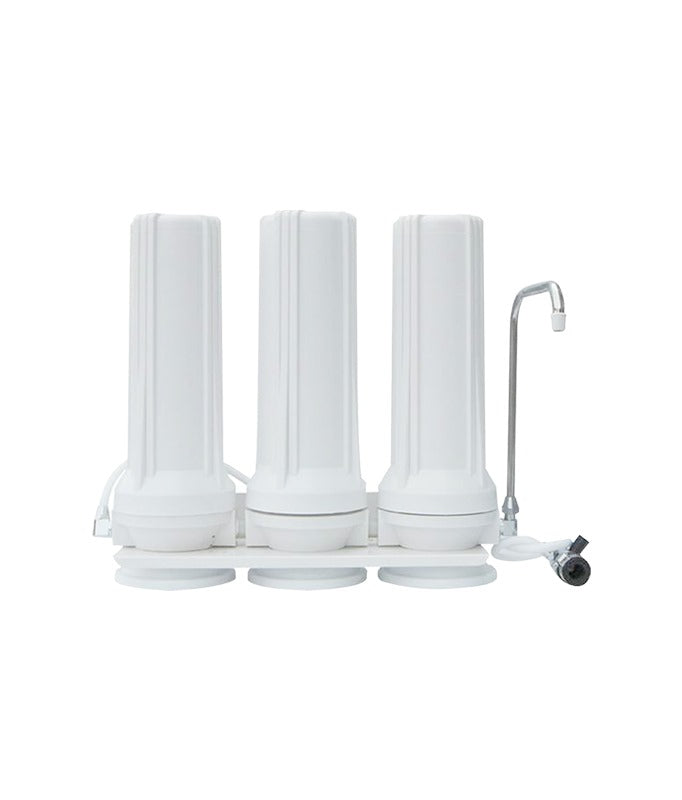 Our Triple Countertop Filter with Tap combines three essential filters to deliver clean and refreshing drinking water directly from your countertop. It includes a Sediment Filter, GAC (Granular Activated Carbon) Filter, and CTO (Carbon Block) Filter.